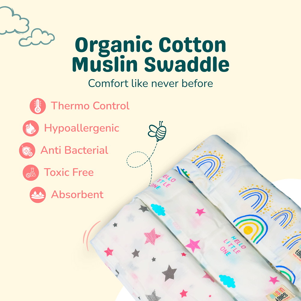 Snuggle your baby tight before they get older. The best swaddles come from Muslin Tales!! Yes… Babies feel snuggled when they are wrapped in our warm muslin swaddles. The best gift to a new born since they love being associated with their mother’s as they are in there for 9 months in a warm and cozy environment. We take full care to provide you the best quality of muslin each thread woven with love. Our Muslin swaddle is designed to provide comfort and security to your little one. Wrap your baby in pure softness. Our high quality 100% cotton muslin with cheerful designs gets softer with every wash.