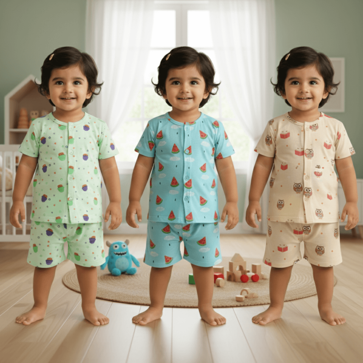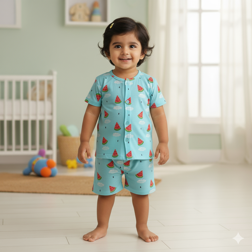 Baby Shirt & Short Set – 100% Cotton Muslin.Dress your little one in pure comfort with our Baby Shirt & Short Set, lovingly crafted from 100% cotton muslin.Made from super-soft and breathable fabric, this set ensures luxurious comfort and cozy softness — gentle on your baby’s delicate skin and perfect for both playtime and nap time.Each piece is carefully crafted with love, ensuring the finest quality in every stitch. Designed to provide comfort, safety, and style, our cheerful prints and airy muslin fabric make this set a must-have for your baby’s everyday wear.